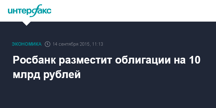 Москва. 14 сентября. INTERFAX.RU – Росбанк 15 сентября открывает книгу заявок на облигации объемом 10 млрд рублей, сообщил "Интерфаксу" источник в банковских кругах.