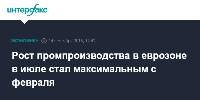 Москва. 14 сентября. INTERFAX.RU – Объем промышленного производства в еврозоне в июле увеличился на 0,6% по сравнению с предыдущим месяцем, свидетельствуют данные Статистического управления Европейского союза (Eurostat).