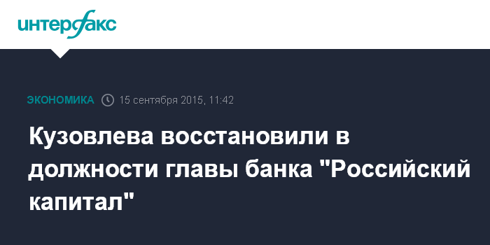 Кузовлева восстановили в должности главы банка "Российский капитал"