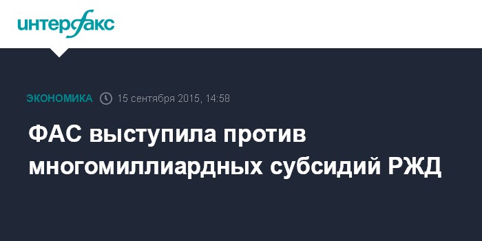 Москва. 15 сентября. INTERFAX.RU – Федеральная антимонопольная служба выступает против многомиллиардных государственных субсидий РЖД при индексации грузовых тарифов на уровне 10%.