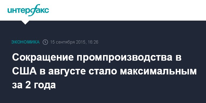 Москва. 15 сентября. INTERFAX.RU – Объем промпроизводства в США в августе 2015 года сократился на 0,4% по сравнению с предыдущим месяцем, говорится в отчете Федеральной резервной системы.