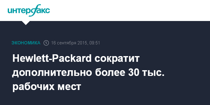 Москва. 16 сентября. INTERFAX.RU – Американская Hewlett-Packard (HP), операции которой с 1 ноября 2015 года будут разделены на две отдельные компании, объявила о новых сокращениях рабочих мест.