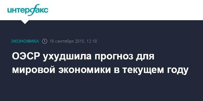 Москва. 16 сентября. INTERFAX.RU – Организация экономического сотрудничества и развития (ОЭСР) ухудшила прогноз роста мировой экономики на ближайшие два года.