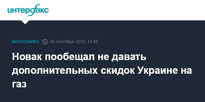 Москва. 16 сентября. INTERFAX.RU - Россия не будет предоставлять Украине дополнительную скидку на газ на зимний период сверх той, которая уже была определена соответствующей формулой.