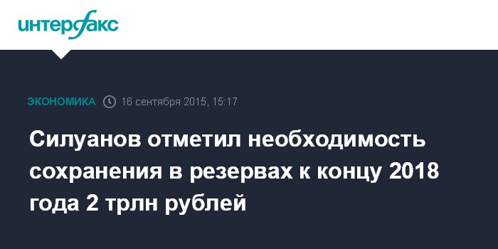 Москва. 16 сентября. INTERFAX.RU - В резервах к концу 2018 года должно сохраниться не менее 2 трлн рублей, сообщил министр финансов РФ Антон Силуанов на заседании думского комитета по бюджету и налогам.