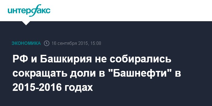 РФ и Башкирия не собирались сокращать доли в "Башнефти" в 2015-2016 годах