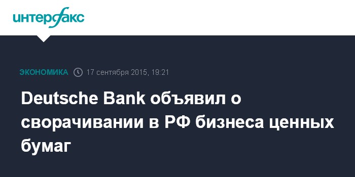 Deutsche Bank объявил о сворачивании в РФ бизнеса ценных бумаг