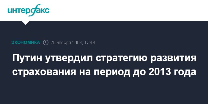 Путин утвердил стратегию развития страхования на период до 2013 года