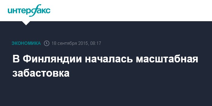 Москва. 18 сентября. INTERFAX.RU - В Финляндии по всей стране в пятницу проходит масштабная забастовка против планируемого правительством изменения условий труда и сокращения доходов работников.