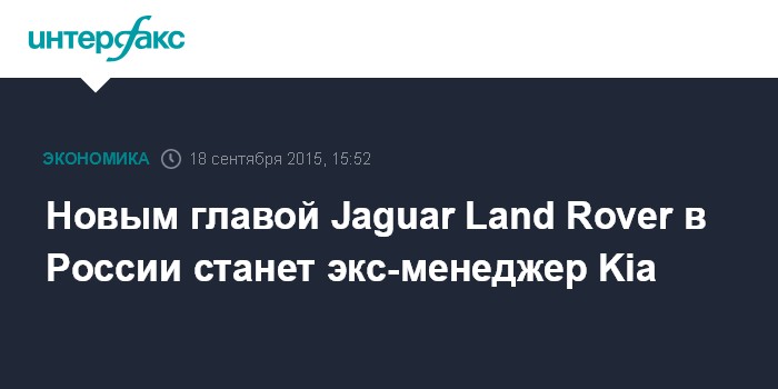 Москва. 18 сентября. INTERFAX.RU – Новым генеральным директором Jaguar Land Rover (JLR) в России, Беларуси и Казахстане с 1 октября станет Артем Гусаров, сообщила компания.