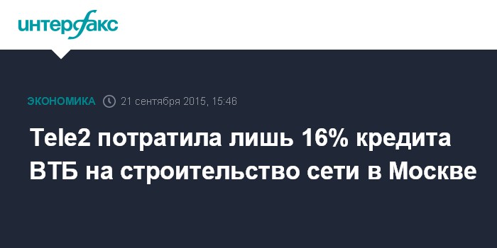 Москва. 21 сентября. INTERFAX.RU – ООО "Пилар" ("дочка ООО "Т2 РТК Холдинг", оператора Tele2) к середине сентября выбрало 2,6 млрд рублей из льготного кредита ВТБ на 16 млрд рублей, предоставленного оператору по механизму проектного финансирования на строительство сети в Москве.