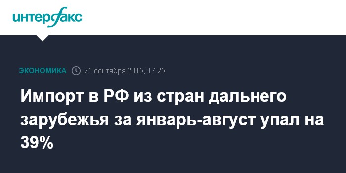 Импорт в РФ из стран дальнего зарубежья за январь-август упал на 39%