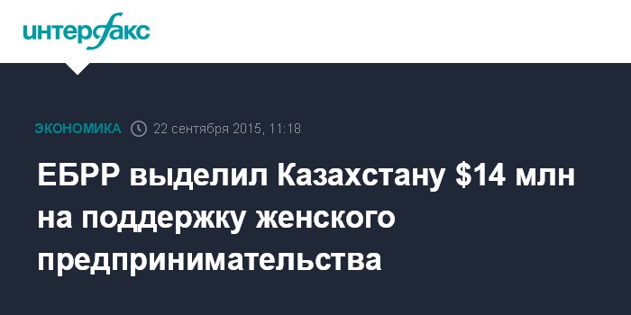 Москва. 22 сентября. INTERFAX.RU - Европейский банк реконструкции и развития (ЕБРР) выделил казахстанскому банку "ЦентрКредит" 3,7 млрд тенге ($13,7 млн по текущему курсу) на поддержку женского предпринимательства в республике по программе "Женщины в бизнесе", сообщается в пресс-релизе казахстанского фонда развития предпринимательства "Даму".