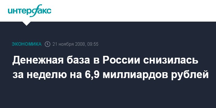 Между тем, на 10 ноября денежная база в России составляла 4416,6 млрд рублей. Таким образом, за неделю она сократилась на 6,9 млрд рублей.