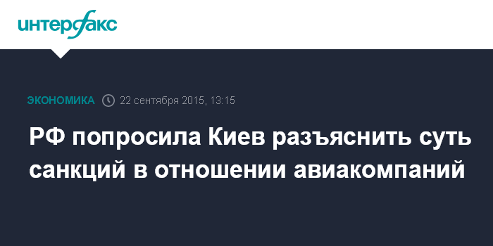 16 сентября российские авиакомпании подпали под санкции Украины "в виде ограничения, частичного или полного прекращения транзита ресурсов, полетов и перевозок по территории Украины". Российские авиавласти пока не получали уведомлений о возможной отмене полетов на Украину.