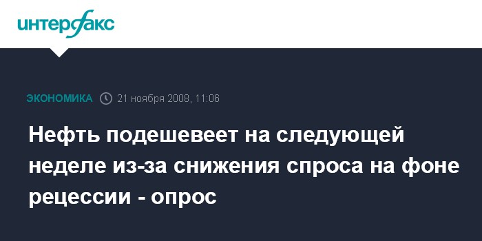 Москва. 21 ноября. INTERFAX.RU - Стоимость нефти может снизиться на следующей неделе на опасениях, что рецессия в США, Европе и Японии приведет к дальнейшему снижению спроса, сообщило агентство Bloomberg.
