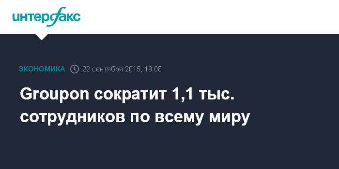 Москва. 22 сентября. INTERFAX.RU – Сервис по предоставлению скидок Groupon Inc. сократит около 1,1 тыс. рабочих мест по всему миру в рамках реструктуризации международных операций.