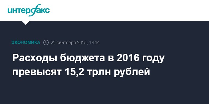 Москва. 22 сентября. INTERFAX.RU – Расходы федерального бюджета в 2016 году превысят 15,2 трлн рублей, сказал журналистам министр финансов Антон Силуанов.