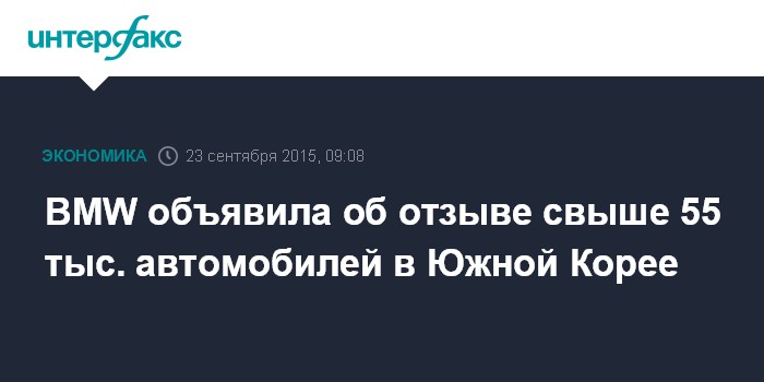 Москва. 23 сентября. INTERFAX.RU – Компания BMW Korea, южнокорейский импортер автомобилей германской BMW AG, отзывает 55,737 тыс. машин, сообщается в заявлении министерства земель, инфраструктуры и транспорта страны.