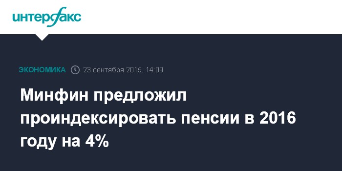 "Мы предлагаем для того, чтобы уложиться в основные параметры бюджета, чтобы не допустить разбалансированности, проиндексировать пенсии более низкими темпами, чем это предусматривается законодательством. Мы сейчас рассматриваем предложение Минфина, которое не принято, но предложение Минфина - индексация пенсий на уровне 4%", - сказал Силуанов.