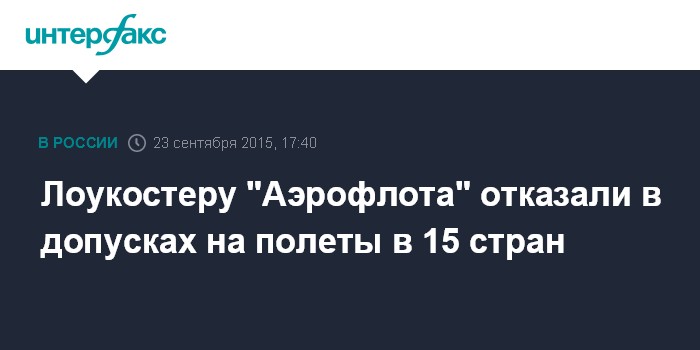 Москва. 23 сентября. INTERFAX.RU - Лоукостеру "Победа" (100-процентная "дочка" "Аэрофлота") отказано в выдаче допуска на полеты в 15 стран, говорится в документах, опубликованных на сайте Федерального агентства воздушного транспорта (Росавиация).