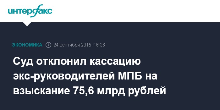 Суд отклонил кассацию экс-руководителей МПБ на взыскание 75,6 млрд рублей