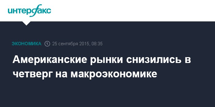 Москва. 25 сентября. INTERFAX.RU – Американские фондовые индексы завершили в минусе торги в четверг на статданных перед выступлением главы Федеральной резервной системы Джанет Йеллен, сообщает агентство Bloomberg.