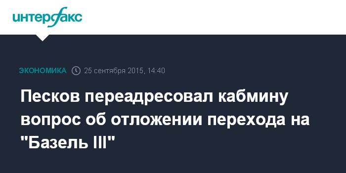 Песков переадресовал кабмину вопрос об отложении перехода на "Базель III"