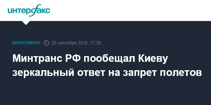 Москва. 25 сентября. INTERFAX.RU - Если намерения Киева запретить на Украине полеты российских авиакомпаний будет реализовано, Москва примет зеркальные ответные меры, заявил министр транспорта РФ Максим Соколов.