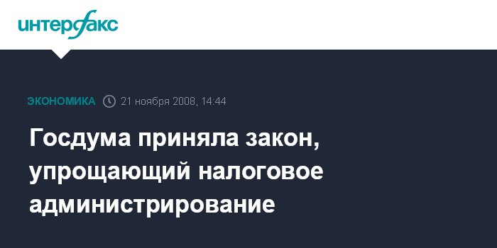Москва. 21 ноября. INTERFAX.RU – Госдума на пленарном заседании в пятницу приняла во втором и третьем чтениях поправки в первую и вторую части Налогового кодекса (НК) РФ, направленные на совершенствование налогового администрирования. В частности, депутаты приняли поправки, которые были озвучены премьер-министром РФ Владимиром Путиным на съезде партии "Единая Россия".
