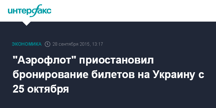 Позднее в компании заявили, что приостанавливают бронирование билетов на украинские рейсы с 25 октября. На сайте "Аэрофлота" забронировать билет на рейсы на Украину после 25 октября невозможно.