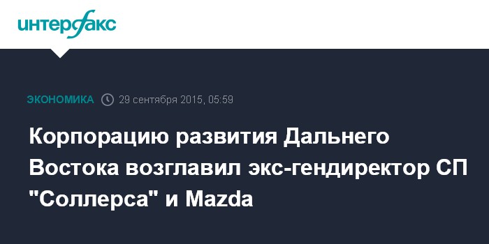 Корпорацию развития Дальнего Востока возглавил экс-гендиректор СП "Соллерса" и Mazda