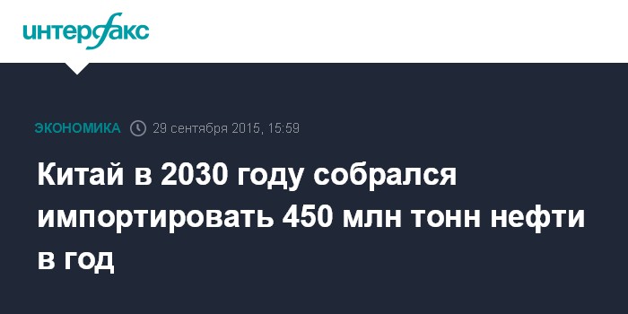 Китай в 2030 году собрался импортировать 450 млн тонн нефти в год
