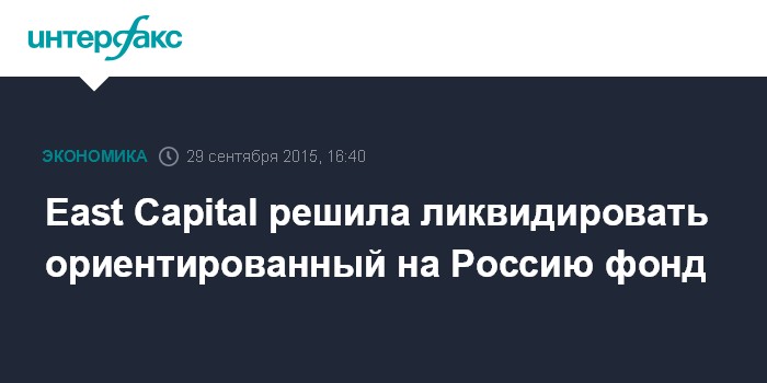 Москва. 29 сентября. INTERFAX.RU – Шведская инвестиционная компания East Capital Explorer приняла решение ликвидировать ориентированный на вложения в российские бумаги фонд East Capital Russia Domestic Growth Fund, говорится в ее сообщении.