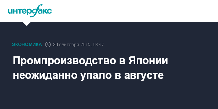 Согласно предварительным данным министерства экономики, торговли и промышленности Японии, промпроизводство сократилось в августе на 0,5% относительно предыдущего месяца, снижение за который составляло 0,8%. Аналитики, опрошенные Bloomberg, в среднем прогнозировали рост показателя на 1%.