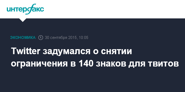 Москва. 30 сентября. INTERFAX.RU – Twitter, владеющая одноименной сетью микроблогов, рассматривает возможность снятия ограничения в 140 знаков для публикуемых сообщений, пишет MarketWatch.