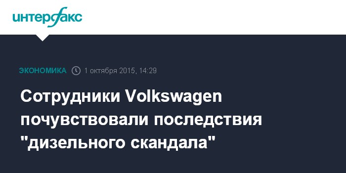 Москва. 1 октября. INTERFAX.RU - Персонал Volkswagen, насчитывающий 600 тыс. человек по всему миру, уже ощущает последствия масштабного "дизельного скандала", передает агентство Bloomberg.