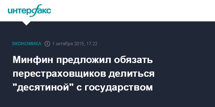 Минфин предложил обязать перестраховщиков делиться "десятиной" с государством