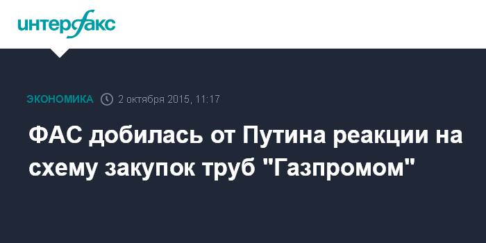 ФАС добилась от Путина реакции на схему закупок труб "Газпромом"