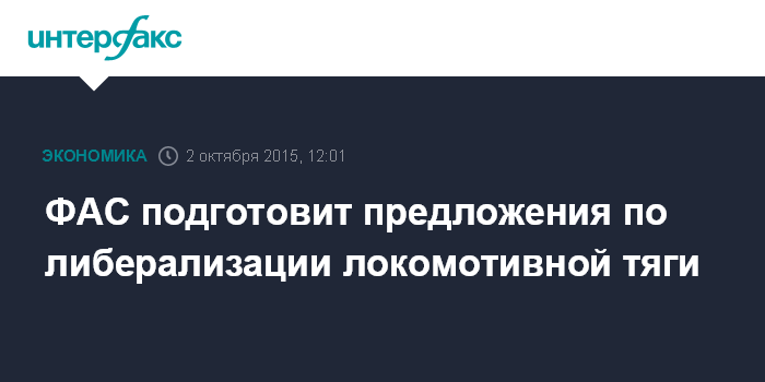 Москва. 2 октября. INTERFAX.RU – Федеральная антимонопольная служба готовит детальные предложения по либерализации локомотивной тяги, заявил "Интерфаксу" глава ведомства Игорь Артемьева.