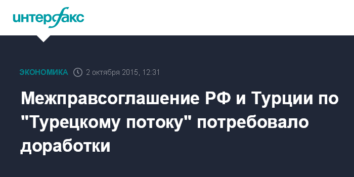 Москва. 2 октября. INTERFAX.RU – Текст межправительственного соглашения с Анкарой по "Турецкому потоку" требует доработки, сообщил журналистам в Стамбуле министр энергетики Александр Новак.