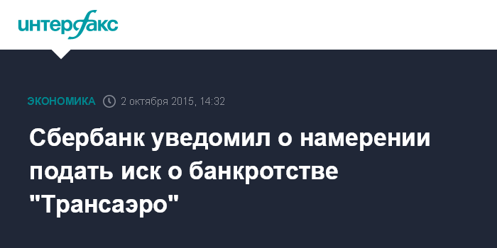 Сбербанк уведомил о намерении подать иск о банкротстве "Трансаэро"