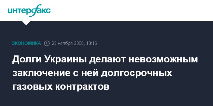 Долги Украины делают невозможным заключение с ней долгосрочных газовых контрактов