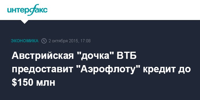 Австрийская "дочка" ВТБ предоставит "Аэрофлоту" кредит до $150 млн