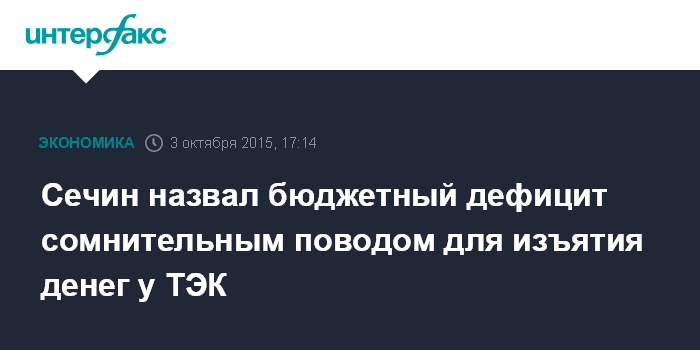 Сечин назвал бюджетный дефицит сомнительным поводом для изъятия денег у ТЭК