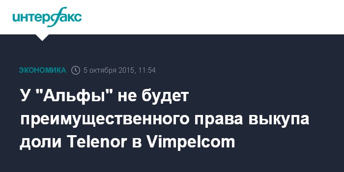 У "Альфы" не будет преимущественного права выкупа доли Telenor в Vimpelcom