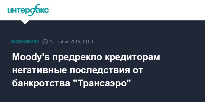 Moody's предрекло кредиторам негативные последствия от банкротства "Трансаэро"