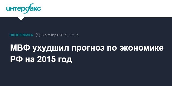 Москва. 6 октября. INTERFAX.RU - Международный валютный фонд ухудшил прогноз по экономике РФ на 2015 и 2016 годы.