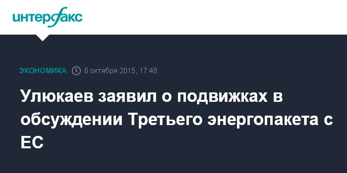 Москва. 6 октября. INTERFAX.RU - Глава Минэкономразвития РФ Алексей Улюкаев считает, что в теме переговоров с ЕС по вопросу Третьего энергопакета наметились подвижки, но речь об отзыве российского иска в ВТО пока не идет.