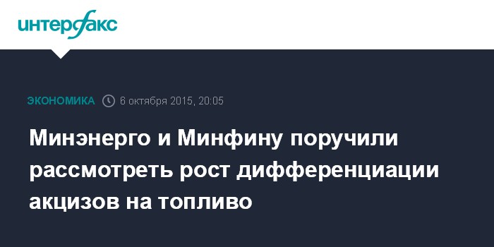 Минэнерго и Минфину поручили рассмотреть рост дифференциации акцизов на топливо